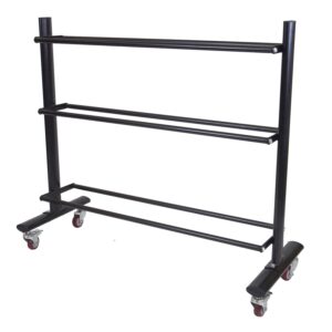 • Rastrelliere porta manubri: possono essere verticali o orizzontali e aiutano a mantenere i manubri ordinati, evitando cadute e danni.