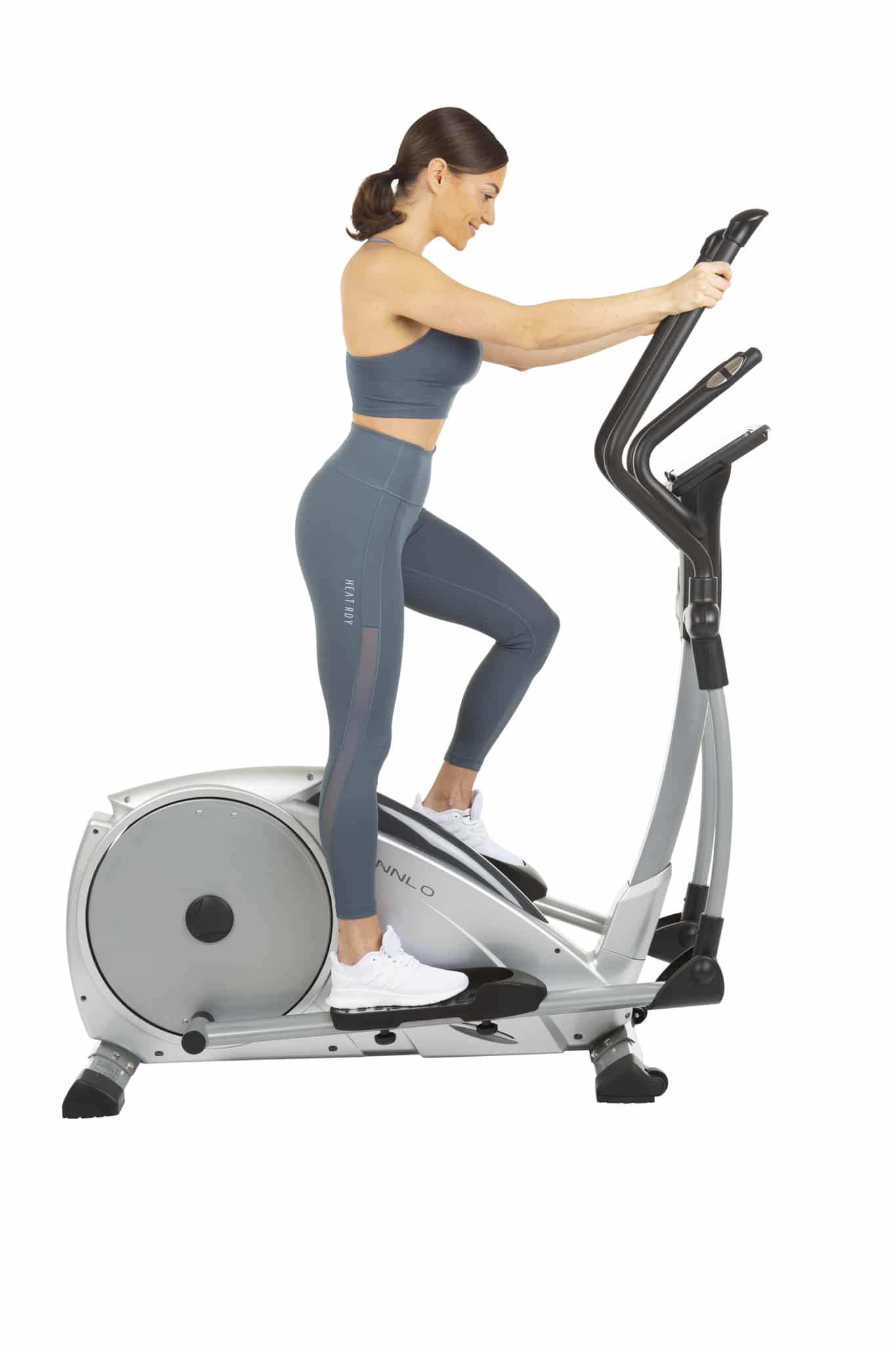 Le dimensioni compatte (148 x 58 x 158 cm) e la capacità di sostenere fino a 150 kg di peso utente lo rendono adatto a casa o in palestra. Con una lunghezza di passo di 40 cm, offre un movimento fluido e naturale. Dotato di sensori manuali per il battito cardiaco e di un ricevitore integrato per le cinture toraciche, il crosstrainer Loxon offre un monitoraggio preciso della frequenza cardiaca durante l’allenamento.