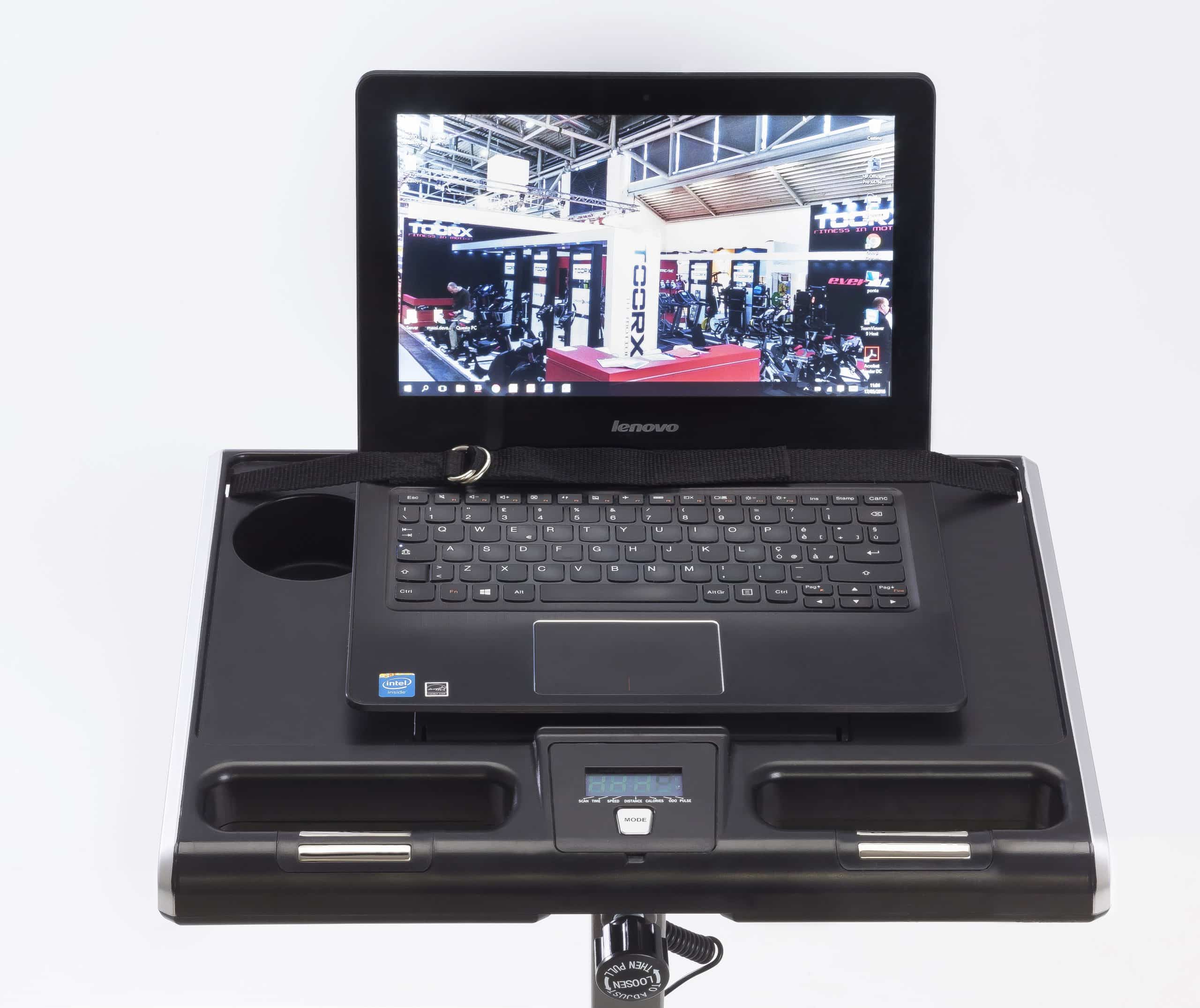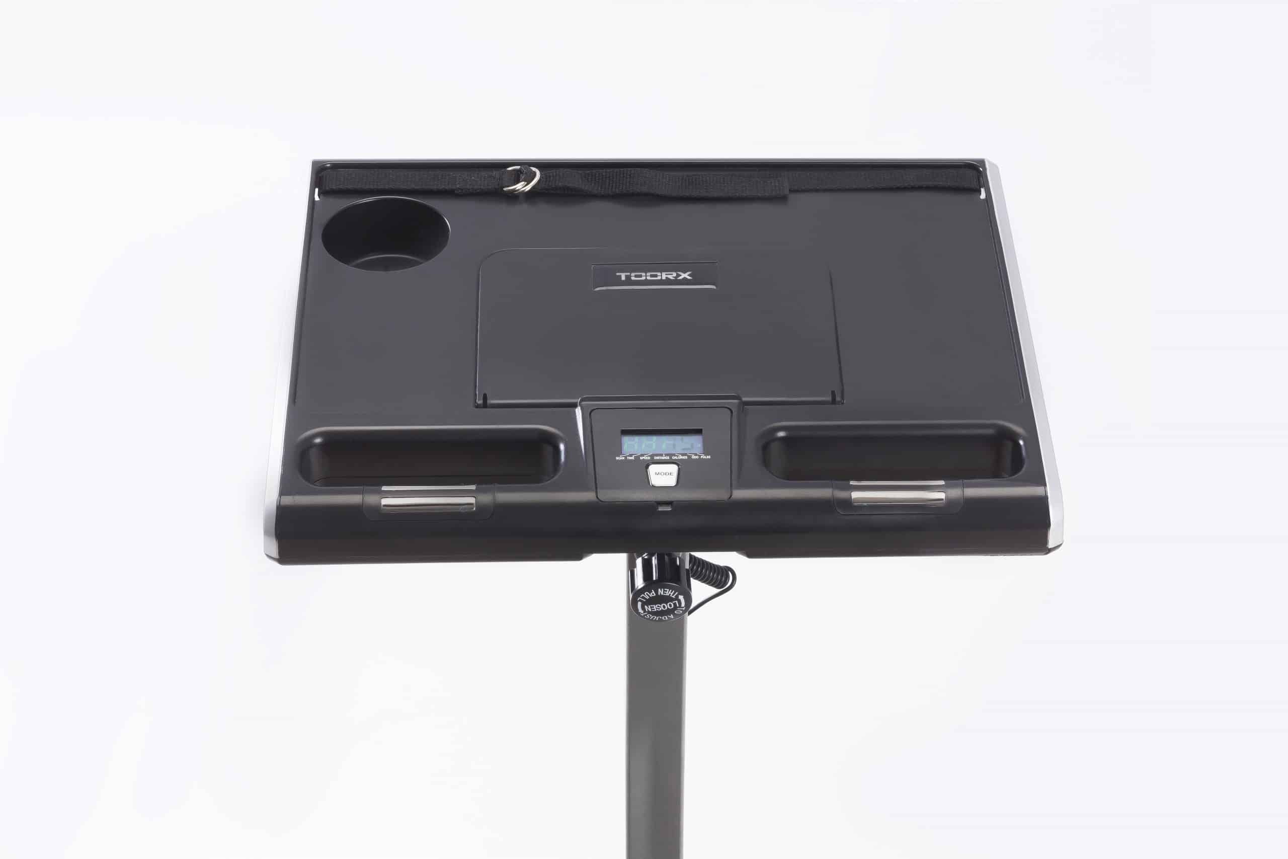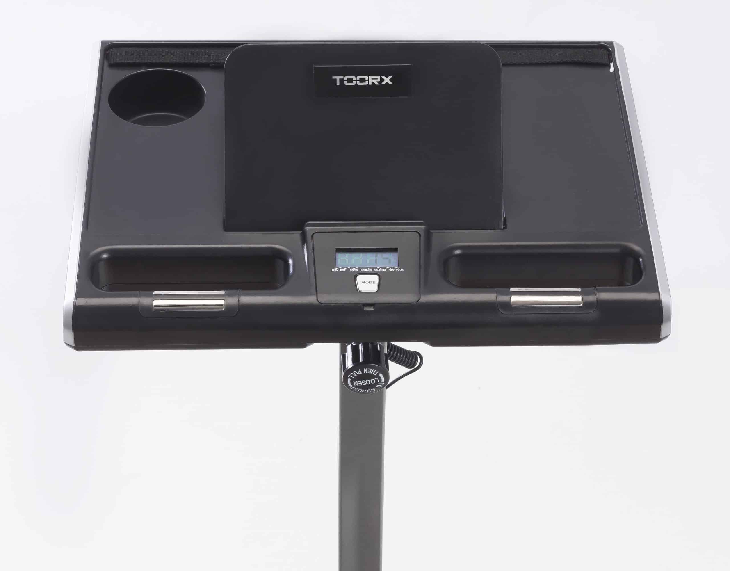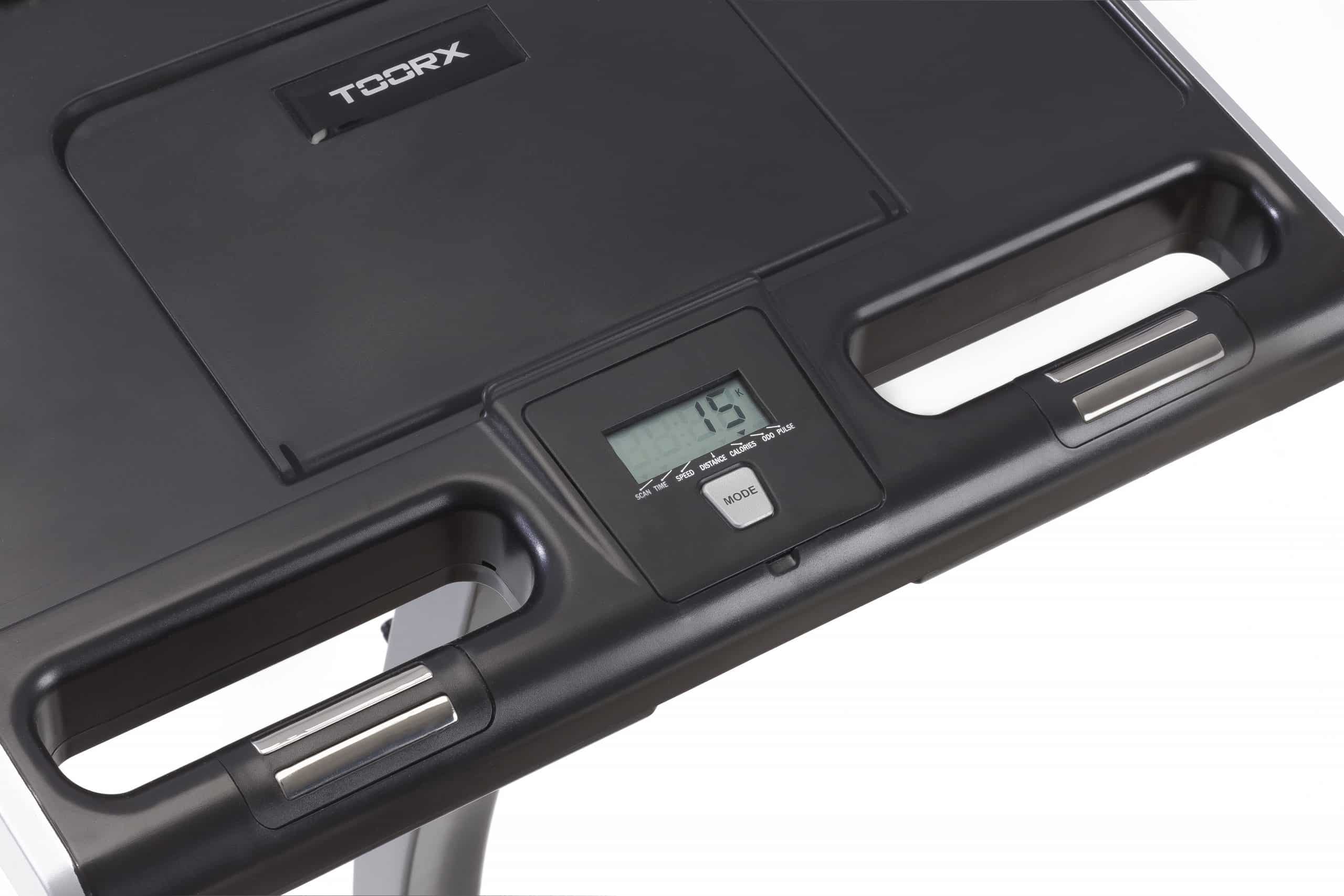 La consolle della cyclette Toorx BRX Compcact Office ha un display LCD che mostra costantemente il tempo, la distanza, la velocità, le calorie e le pulsazioni, rilevate tramite gli appositi sensori manuali Hand Pulse.