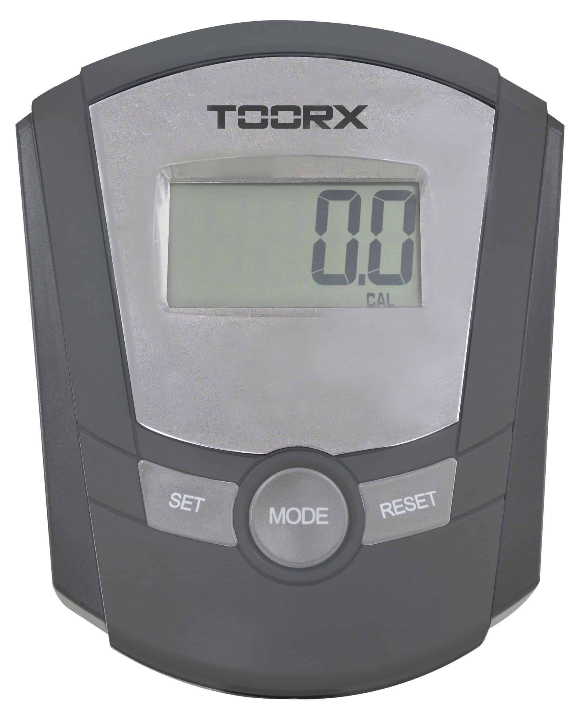La consolle della cyclette Toorx BRX 85 ha un display LCD che mostra costantemente il tempo, la distanza, la velocità, le calorie e le pulsazioni, rilevate tramite gli appositi sensori manuali Hand Pulse.