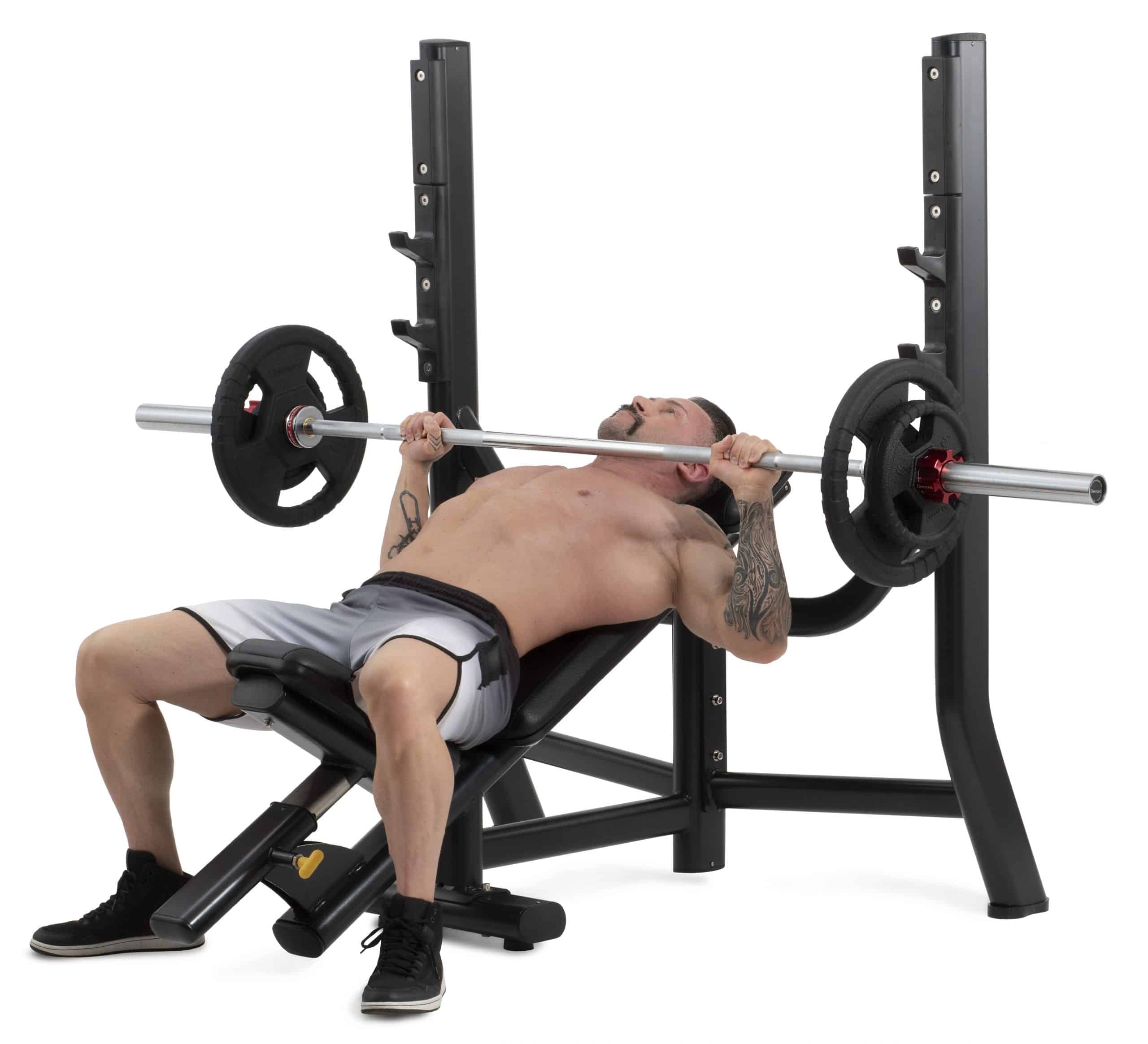 La Olympic Incline Bench del marchio Diamond, dalla struttura robusta e design lineare e moderno, è una panca inclinata ideale per allenamenti di media ed alta intensità in palestre, centri fitness, studi medici ed altre strutture.