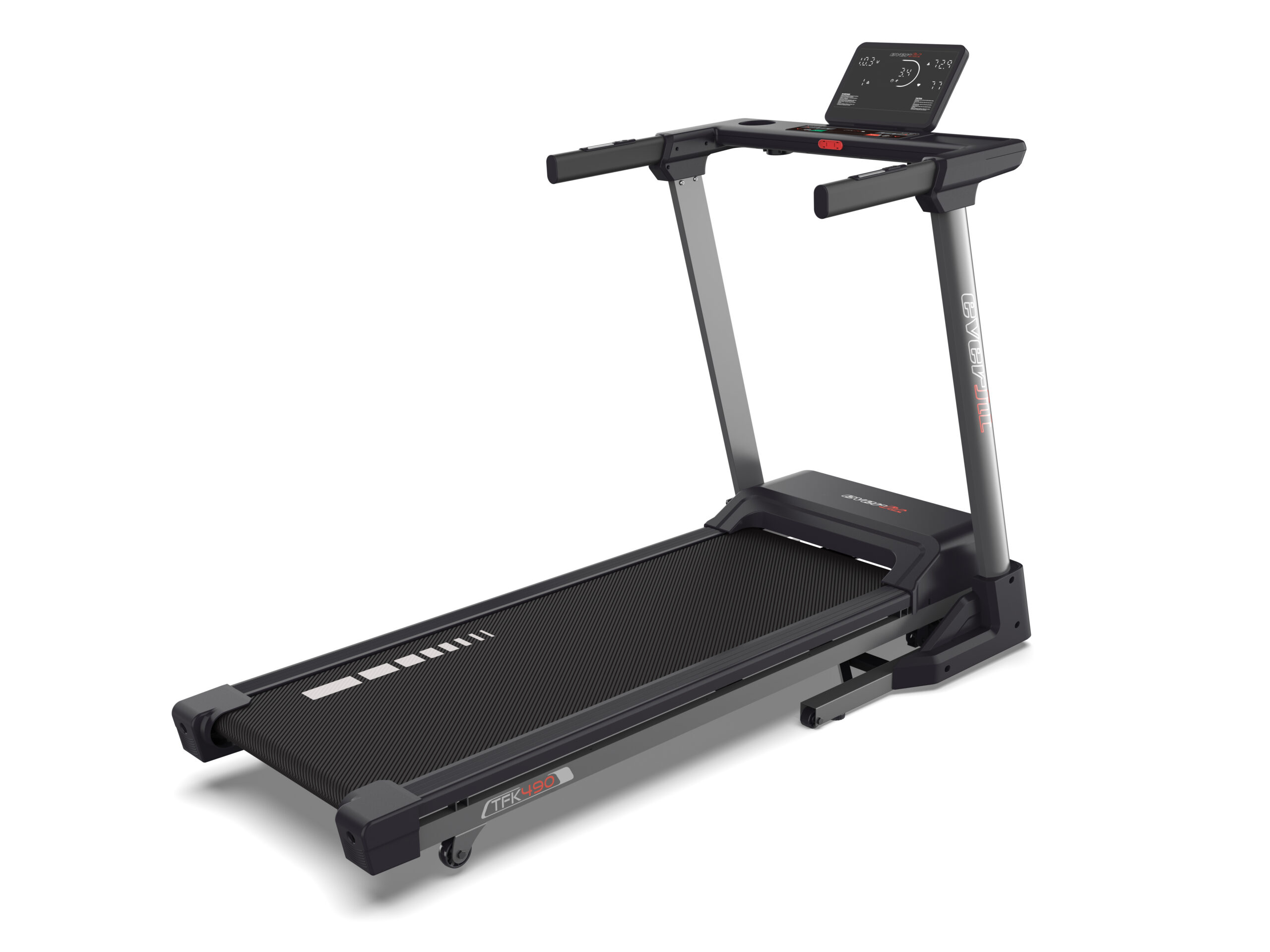 Il piano di corsa da 43 x 132 cm, con nastro standard da 1,6 mm, è supportato da 4 elastomeri con sistema Soft Cushions System, studiato per ridurre l’impatto sulle articolazioni e garantire una corsa confortevole. Rispetto al modello TFK 390, questo tapis roulant offre l’ulteriore vantaggio dell’inclinazione elettrica fino al 12% su 15 livelli, che permette di simulare salite reali e aumentare l’intensità degli allenamenti con un semplice comando.