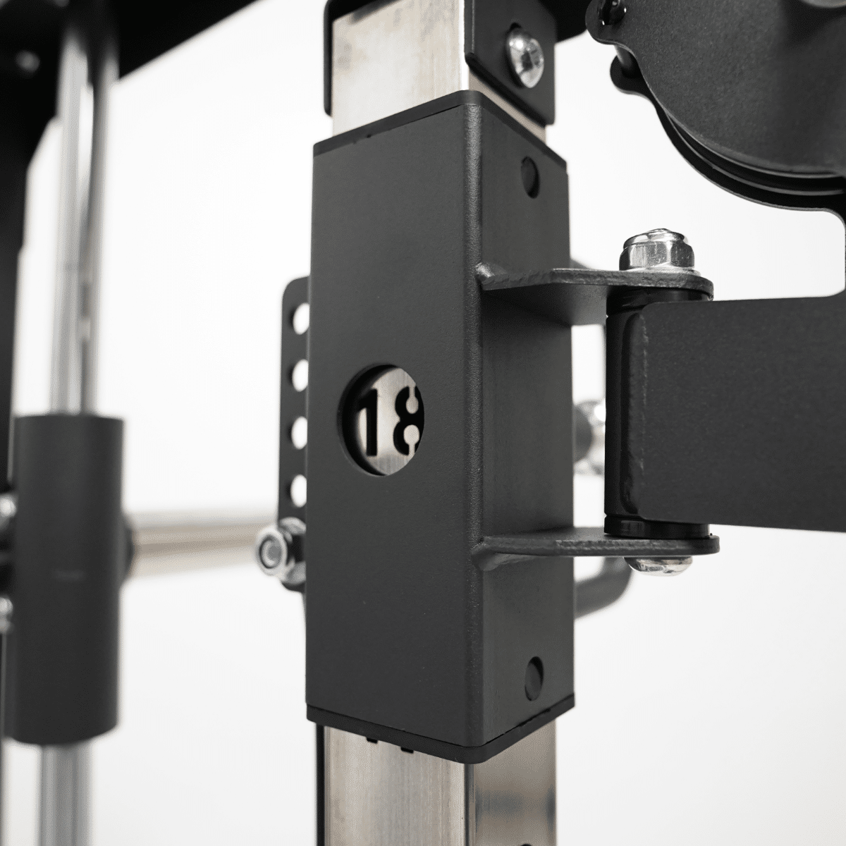 Le caratteristiche includono un rapporto cavo 2:1 che assicura una risposta fluida e uniforme durante gli esercizi, un cavo basso che offre un’ampia gamma di opzioni per gli esercizi di tirata, una robusta Smith Machine con una capacità massima di 200 kg per soddisfare le esigenze degli atleti più impegnati e 19 posizioni di blocco della macchina via cavo che consentono una precisione millimetrica nelle regolazioni.