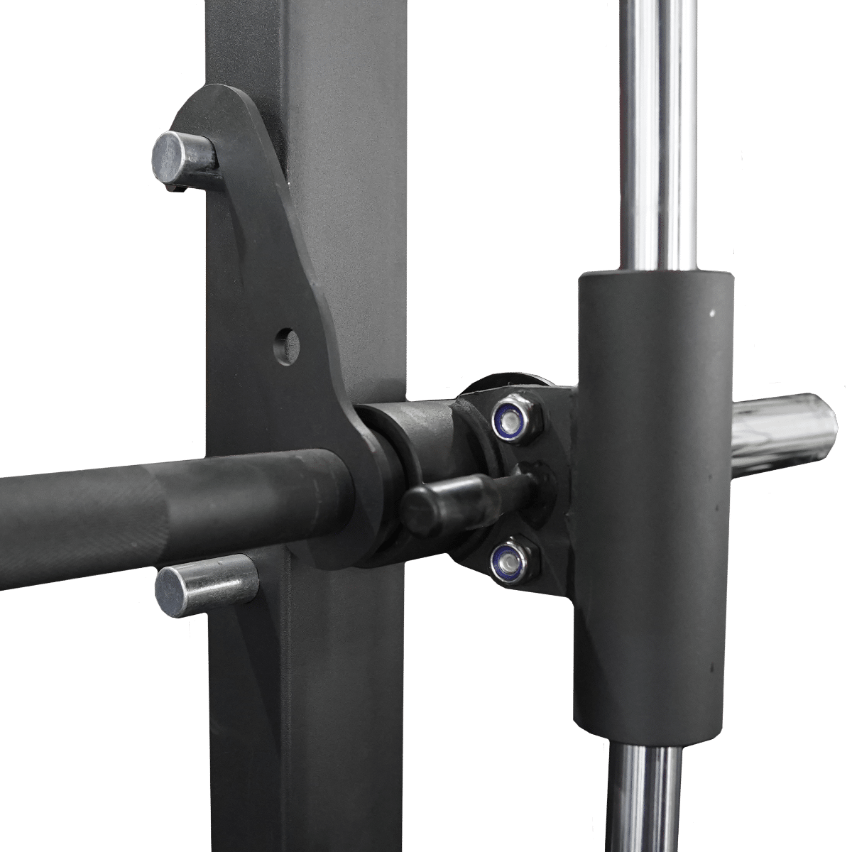 | Inclusi | Tabella degli esercizi, smith machine, 6 supporti per dischi olimpici, barra olimpica inclusa, 19 posizioni di blocco via cavo, barra per trazioni multi-grip con 350 kg, bar olimpico, spotters di sicurezza anteriori, ganci a barra "J Hooks", corda per tricipiti, full bar, manici a forma di D, accessorio "Landmine" per T Bar, Dip Handles per gli sfondi, barra di spinta per bicipiti e tricipiti, set di catene, supporto ginocchio in schiuma |