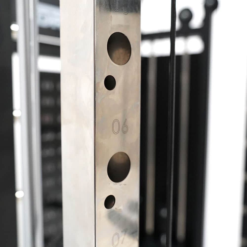 Con una costruzione robusta e una serie di caratteristiche di sicurezza avanzate, il Force USA G6 All-In-One Trainer è progettato per resistere agli allenamenti più intensi. Con un telaio laterale completamente saldato, tubi guida in acciaio inossidabile e una capacità massima di carico fino a 450 kg per il pull-up bar, 400 kg per la Smith Bar e 800 kg per il J Hook, puoi essere sicuro di ottenere prestazioni eccezionali e durature da questo sistema di allenamento completo.