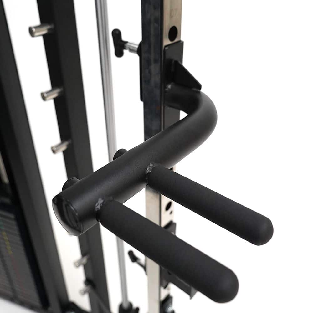 La Smith Machine integrata offre un movimento fluido e controllato, consentendo un allenamento sicuro e efficace. Con un semplice giro del polso, è possibile trasferire la barra con facilità, garantendo un’esperienza di allenamento senza soluzione di continuità.