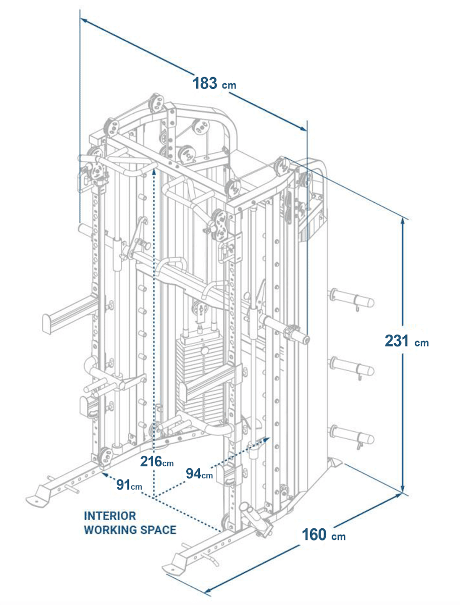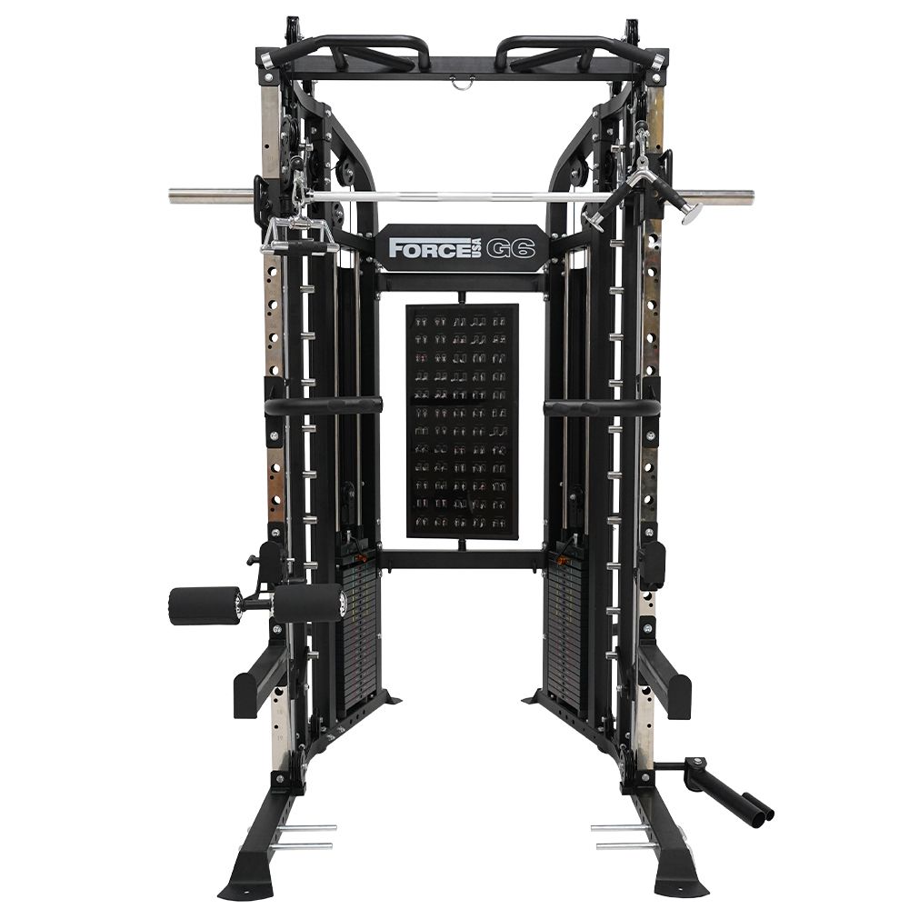 Il Force USA G6 All-In-One Trainer, un’innovativa combinazione di Power Rack, Functional Trainer e Smith Machine, progettata per offrire un’esperienza di allenamento completa e versatile. Questo sistema integrato unisce la versatilità di una doppia puleggia regolabile con la sicurezza di una macchina Smith e la robustezza di un Power Rack, offrendo infinite possibilità di allenamento per tutti i gruppi muscolari.