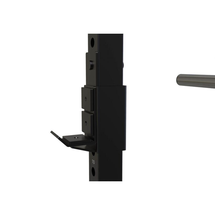 I tubolari sono in acciaio a sezione quadrata 75×75 x3,2 mm per garantire una massima stabilità durante l’uso. Questo half rack ha ben 25 fori posizionati in verticale per poter agganciare il j-hook ed il suo attacco è quindi regolabile da un minimo di 45 cm fino ad un massimo di 189 cm di altezza ed interasse di 60 mm.