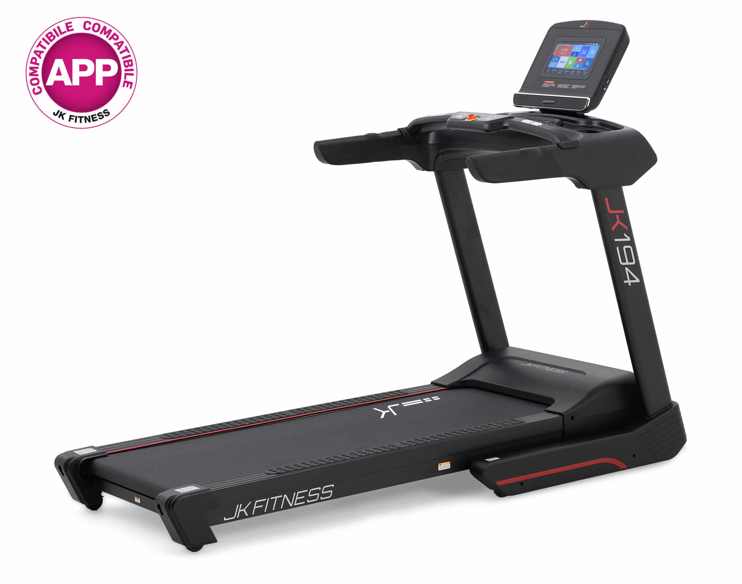 Il nuovo tapis roulant JK 194 entra di diritto ai vertici della gamma home fitness migliorando le caratteristiche tecniche, rispetto alla gamma precedente, il tutto inserito in un contesto più sportivo e interattivo.