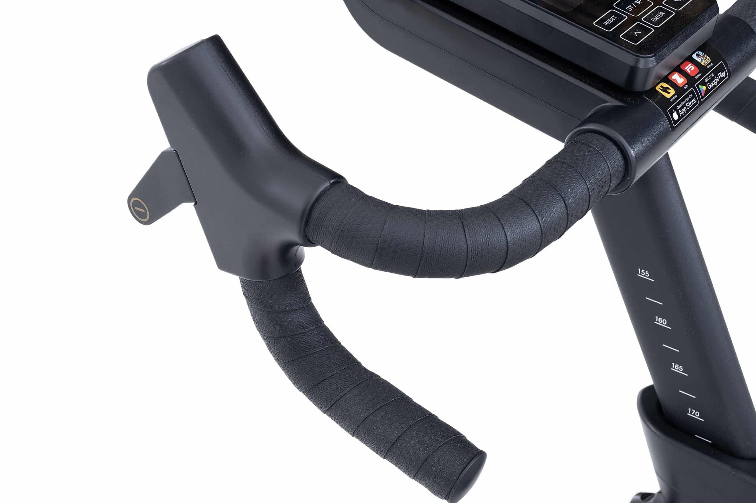 La struttura è progettata per il massimo comfort: la sella racing, con foro centrale, è regolabile micrometricamente in altezza (73-100 cm) e profondità (fino a 10 cm), mentre il manubrio tipo gravel con rivestimento racing è regolabile in altezza (155-195 cm) e dotato di comandi ergonomici per il cambio di resistenza.