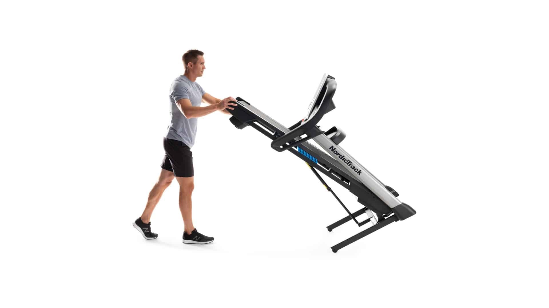 Una delle caratteristiche più apprezzate è il meccanismo SpaceSaver® che consente di sollevare la superficie di corsa con un solo gesto e riporre il tapis roulant in verticale.