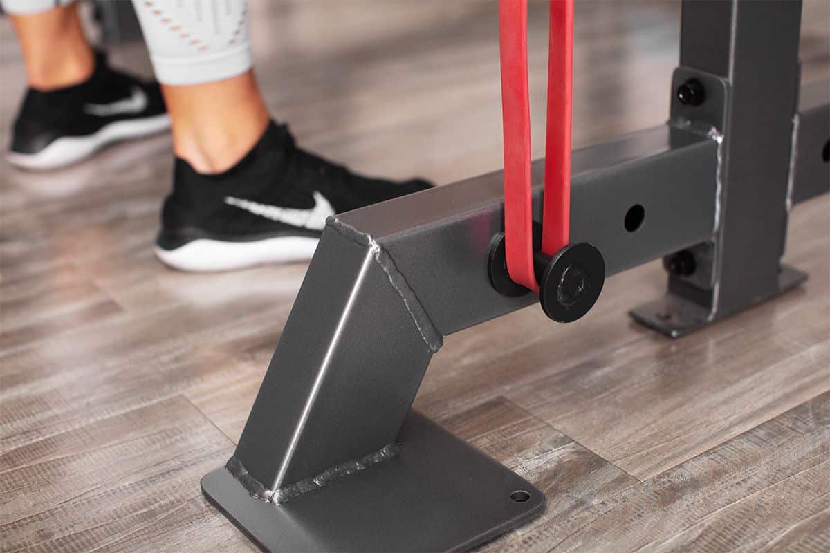 | ACCESSORI | Spotter (barre di sicurezza), barre per il pull-up, ganci a barra multi-posizione |