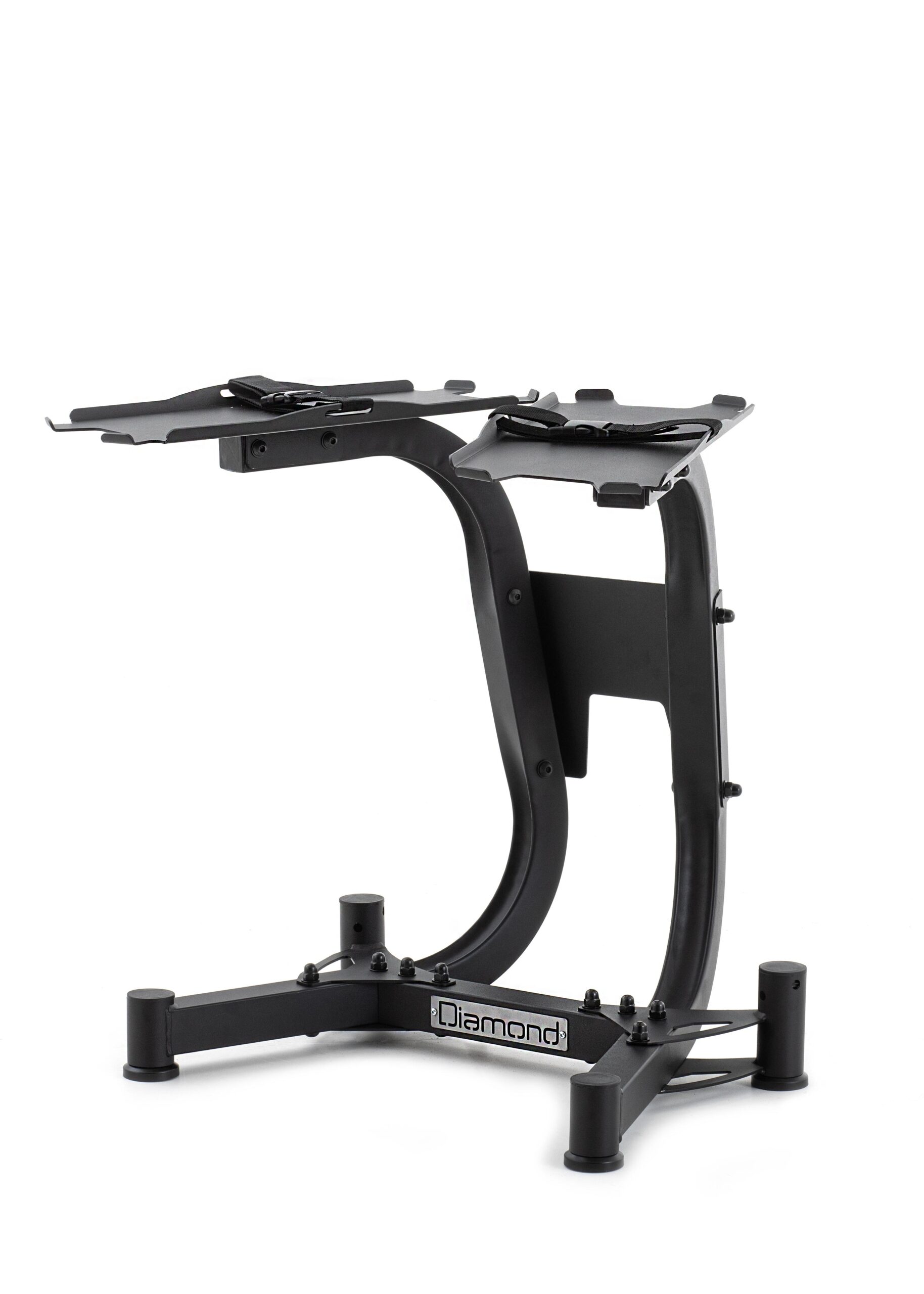 La Rastrelliera Manubri Selezionabili Diamond è progettata per manubri selezionabili come gli MS32S, con due ripiani da 52×24 cm ciascuno. Ogni ripiano supporta un carico massimo di 40 kg e include una cintura di sicurezza. Le dimensioni della rastrelliera sono 83 x 56 x 71 cm, con un peso di 18 kg.