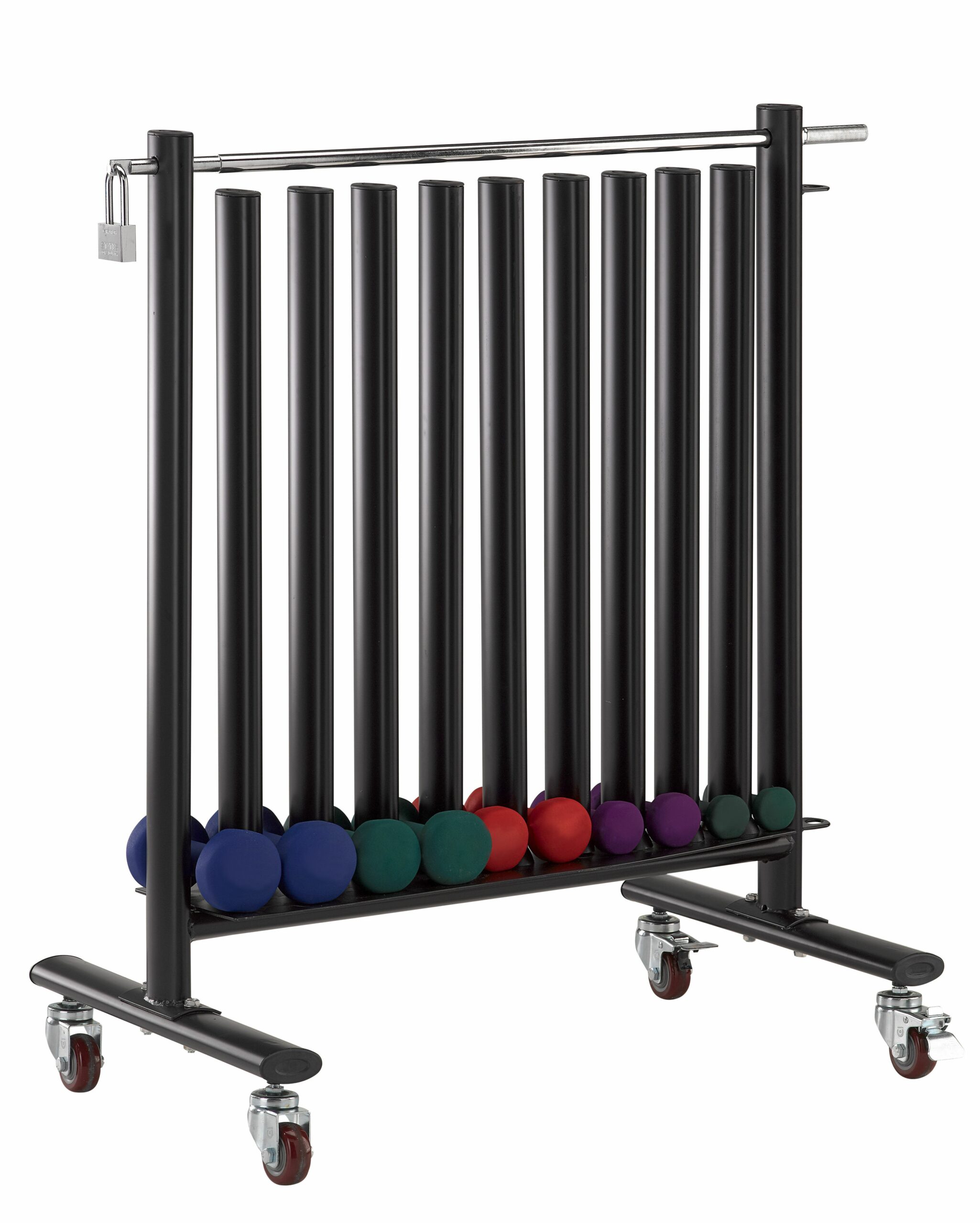 La Rastrelliera Manubri Vinile/Neoprene Diamond offre storage verticale per manubri, con una barra di chiusura per garantire la sicurezza in ambienti ad uso collettivo. È equipaggiata con ruote a cuscinetto e freno per un facile spostamento. Le dimensioni sono 95 x 62 x 121 cm.