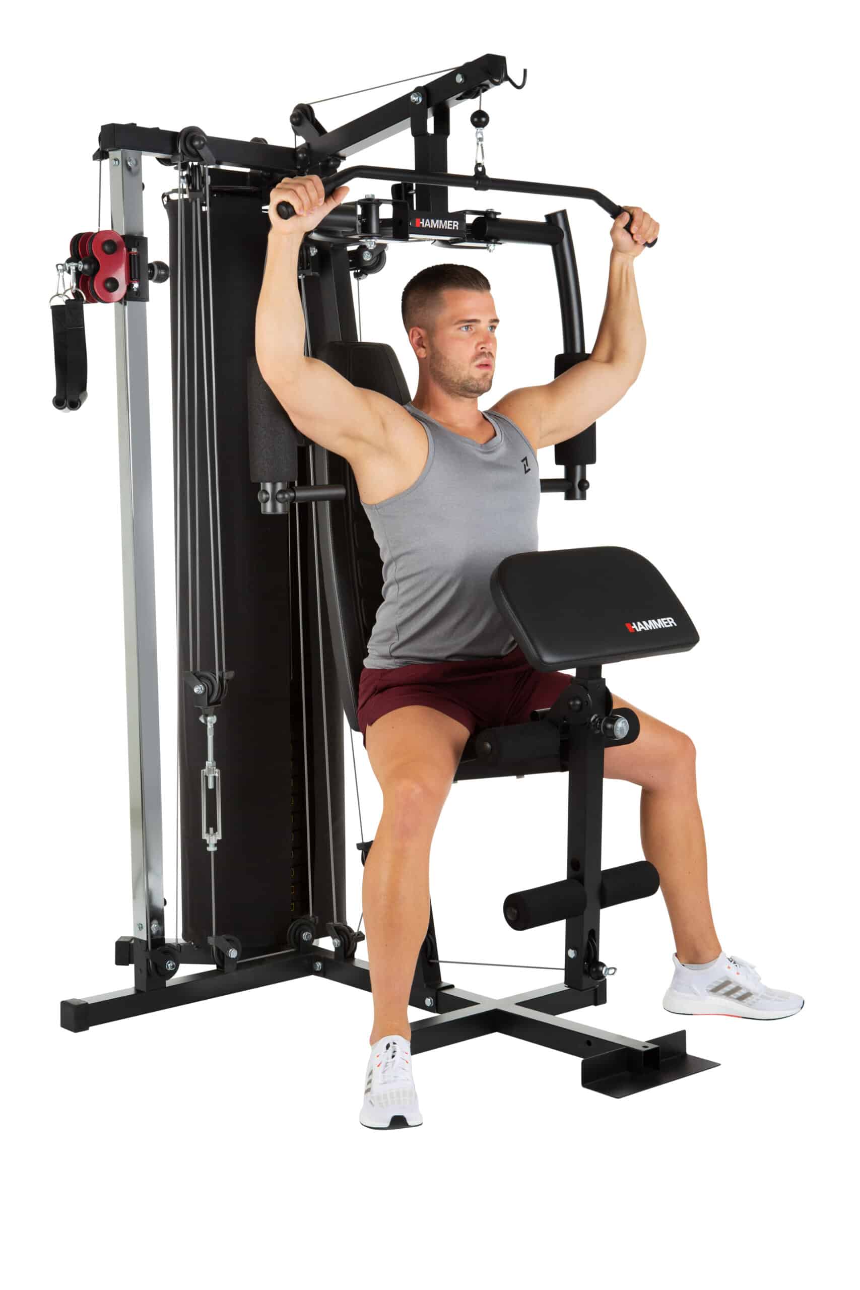 Il Ferrum TX2 di HAMMER è un “strength-turbo” efficace e compatto con il quale puoi lavorare intensamente tutti i gruppi muscolari importanti. Anche in spazi ristretti è possibile lavorare facilmente i muscoli del petto, della schiena, delle spalle, delle braccia e delle gambe.