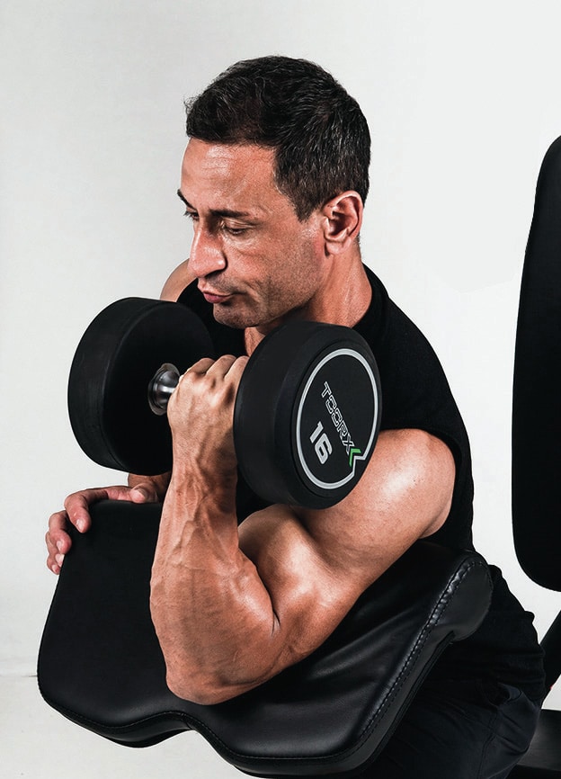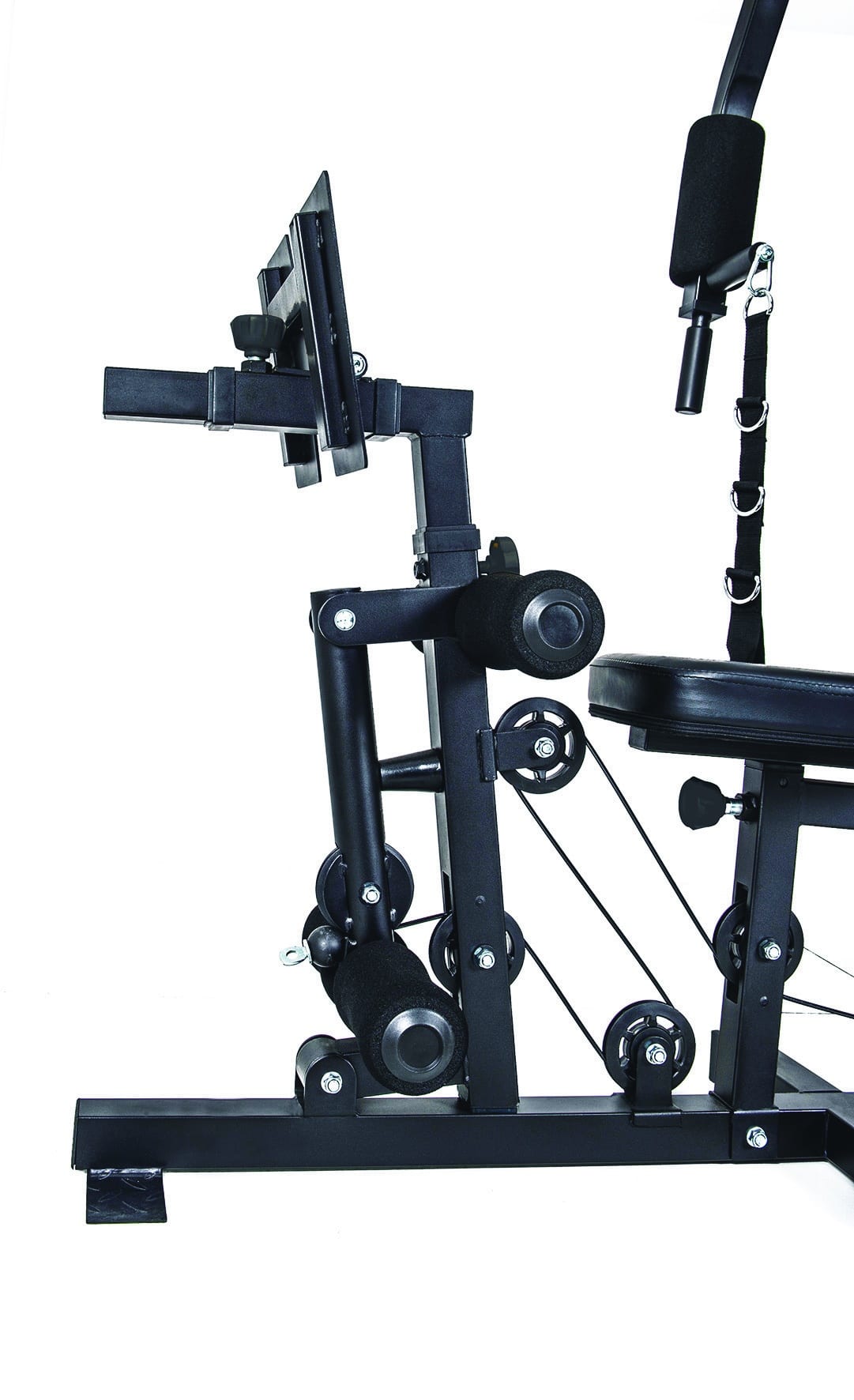 La seduta e lo schienale sono imbottiti in foam ad alta densità per avere un maggiore comfort durante l’allenamento. Anche i cuscini cilindrici sono imbottiti e molto confortevoli.