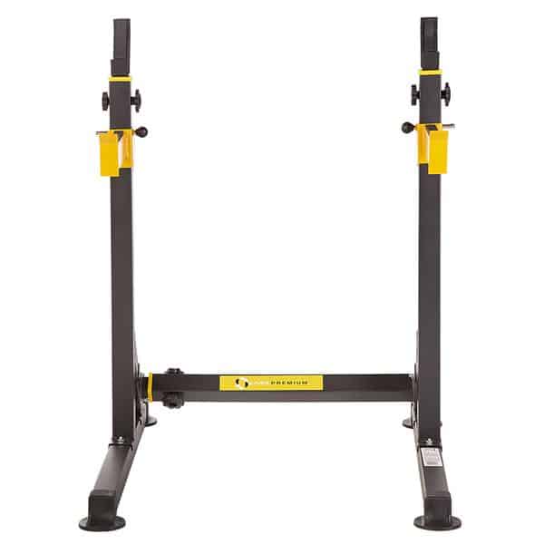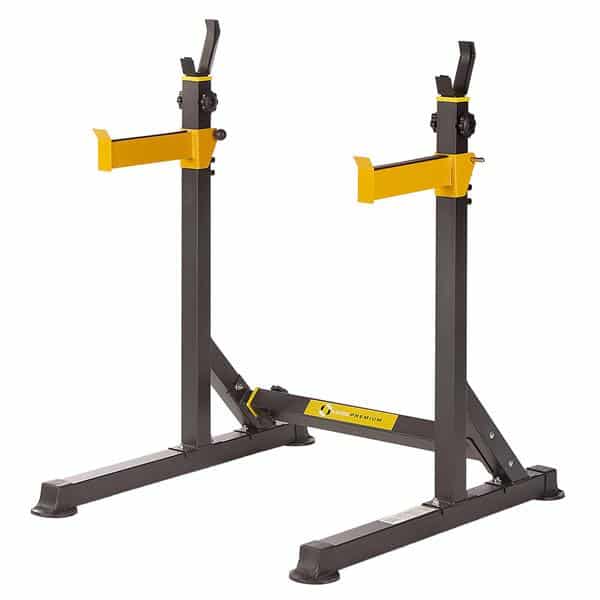 Il supporto porta bilanciere regolabile HMS ha una struttura molto robusta e può sostenere un carico massimo di 180kg.