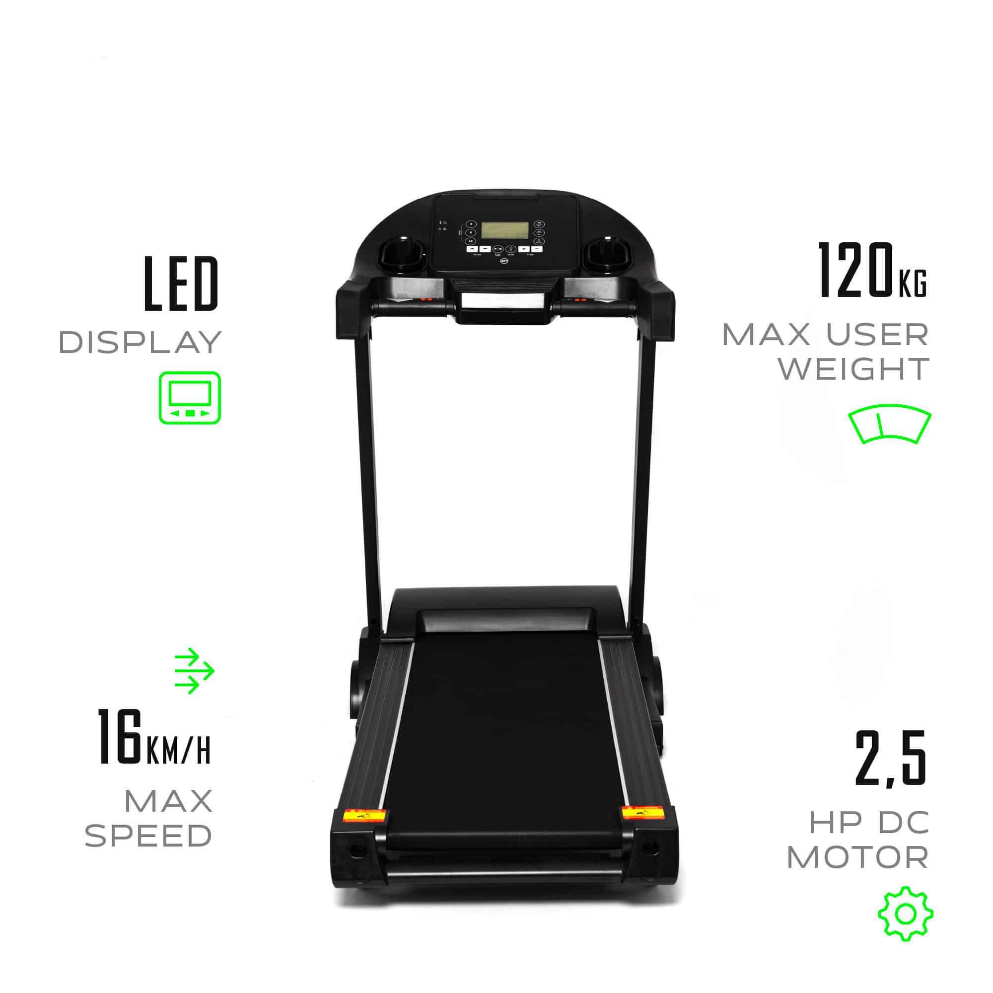 La struttura del tapis roulant elettrico HS Race XT16 è molto solida e può sostenere un utente dal peso massimo di 120 kg.