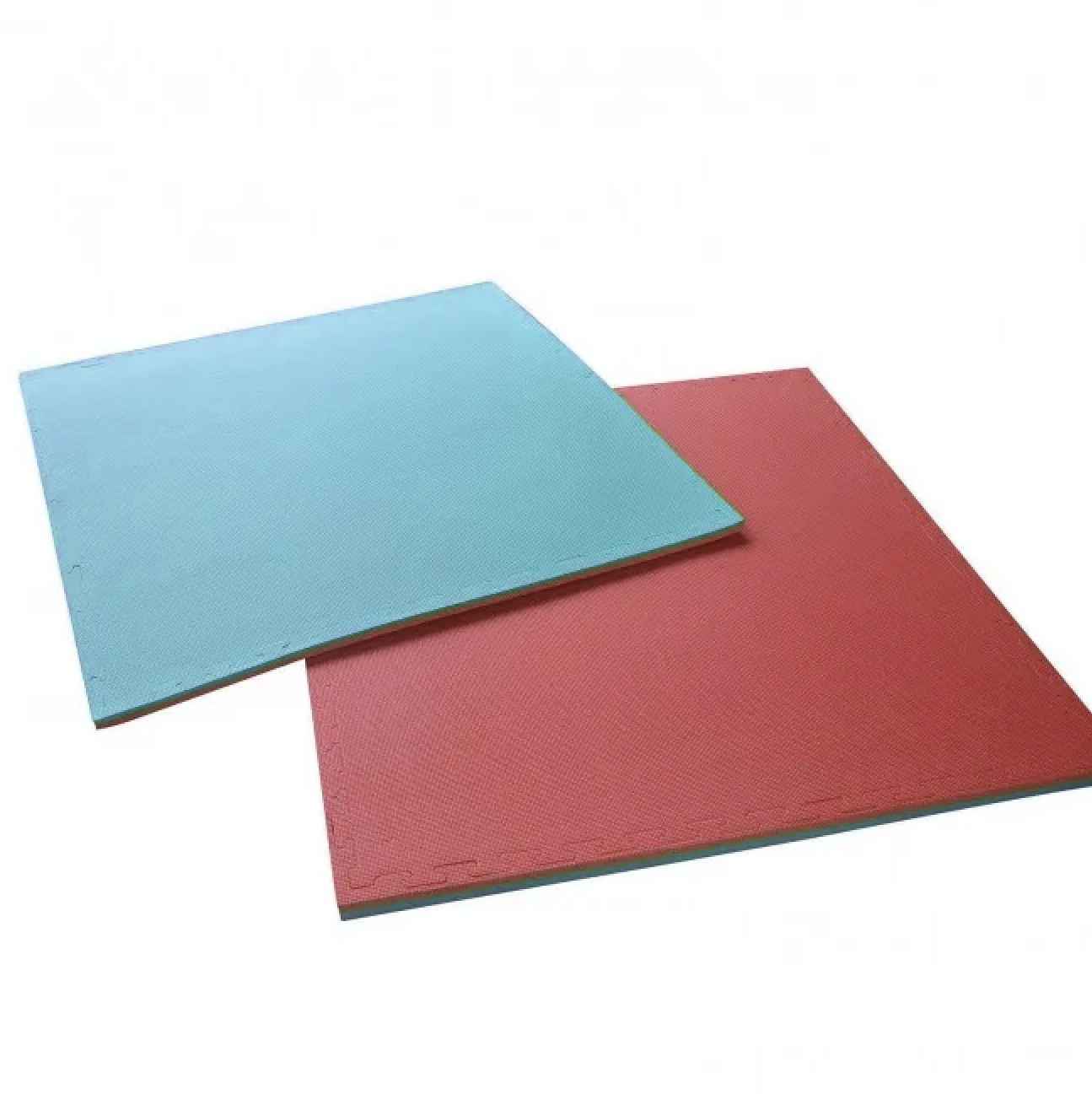 Superficie antiscivolo. Bicolore blu e rosso. 4 bordi inclusi. Dimensioni 100 x 100 x 4 cm.