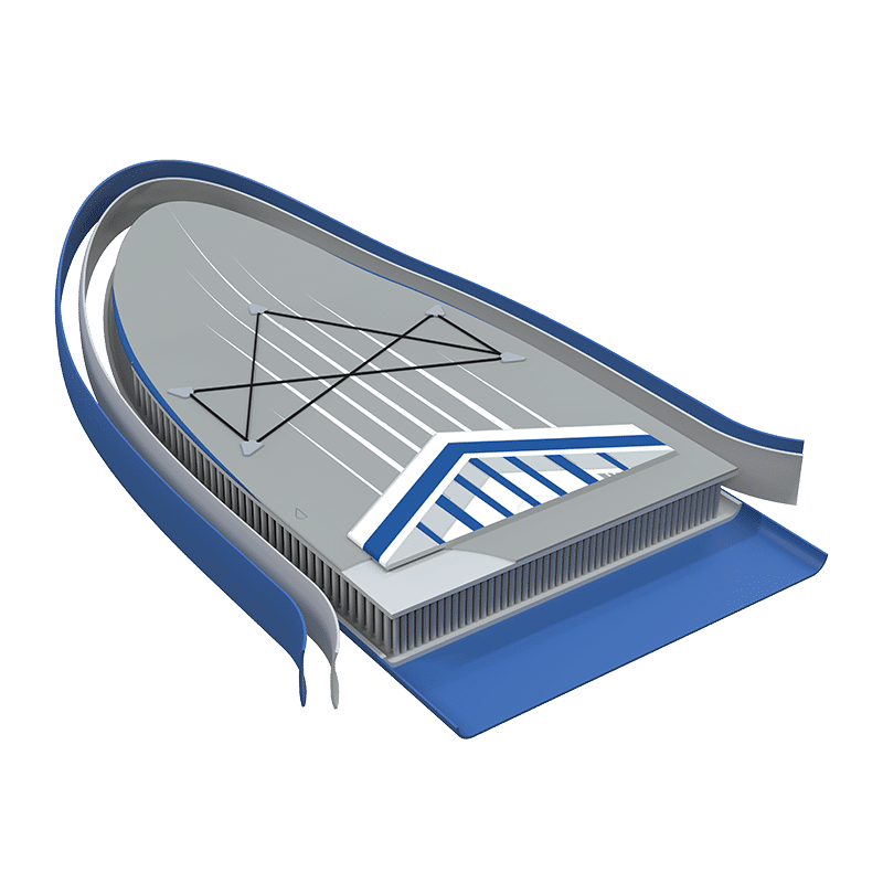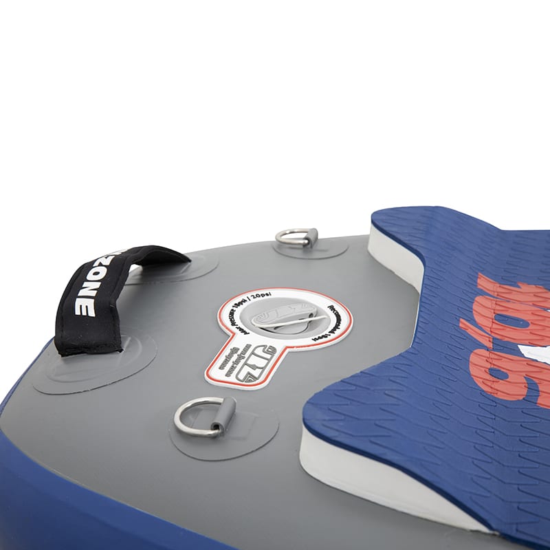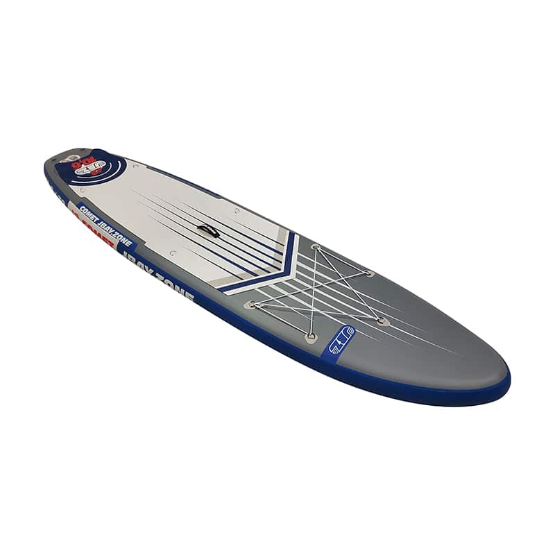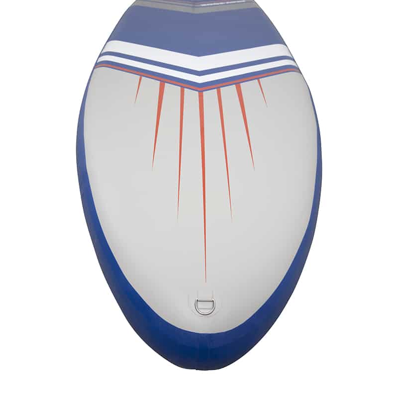 La tavola è realizzata in materiale PVC di alta qualità con tecnologia “dropstitch 2FL Tech” che la rende rigida e resistente all’acqua, ma allo stesso tempo leggera da trasportare. Grazie al materiale di cui è composto, una volta raggiunta la pressione di 18/20PSI, il prodotto si dimostra rigido e con un ottimo supporto al peso.