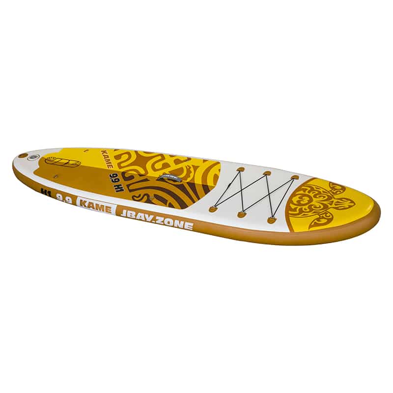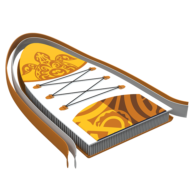 La tavola è realizzata in materiale PVC di alta qualità con tecnologia “dropstitch UAL” che la rende rigida e resistente all’acqua, ma allo stesso tempo leggera da trasportare. Grazie al materiale di cui è composto, una volta raggiunta la pressione di 15PSI, il prodotto si dimostra rigido e con un ottimo supporto al peso.