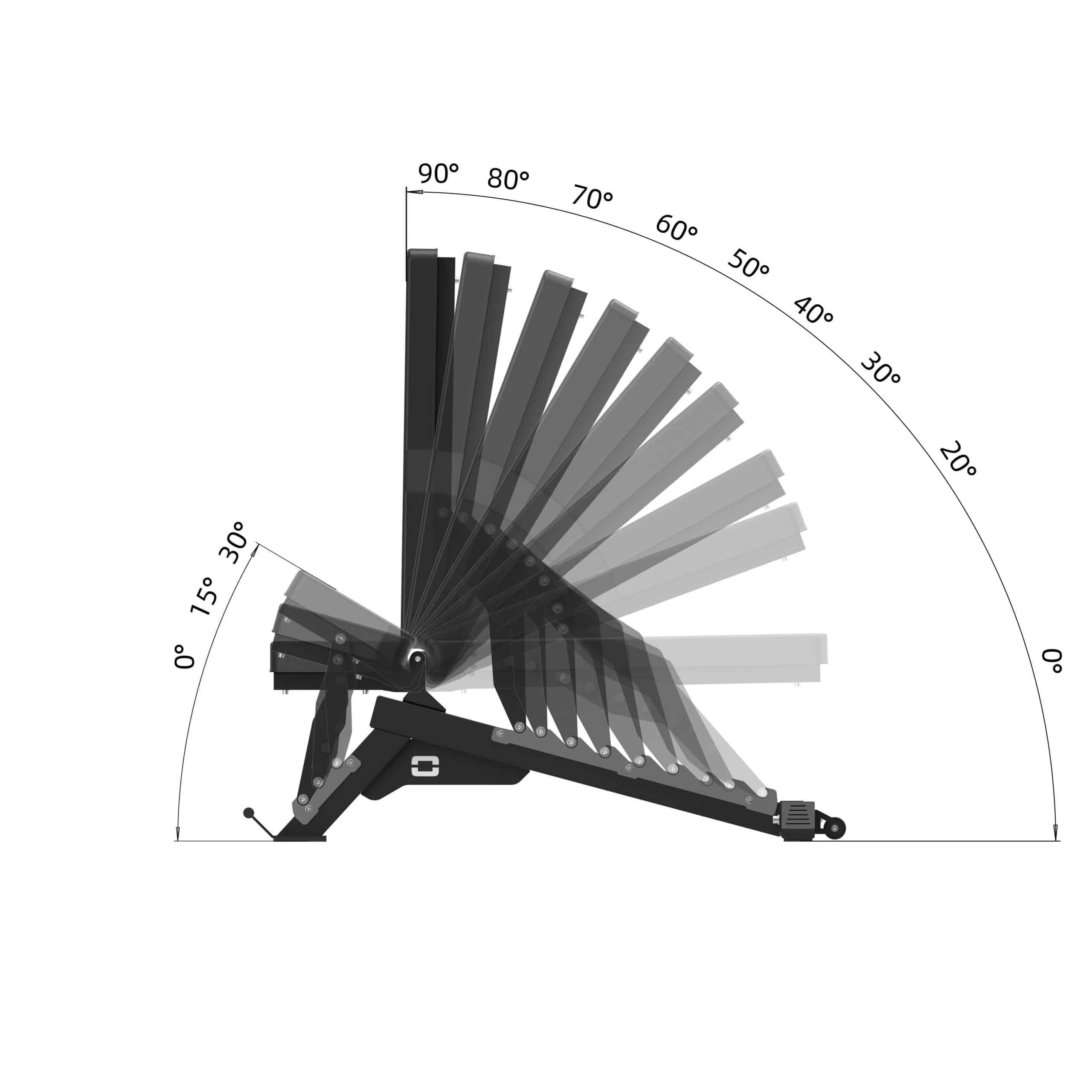 Dotata di una serie di opzioni di regolazione, la WBX 950 offre un’inclinazione del sedile su 3 livelli: 0°, 15° e 30°, consentendo di personalizzare la propria posizione per ottenere il massimo comfort e supporto durante gli esercizi. Inoltre, lo schienale è regolabile su ben 9 livelli, da 0° a 90°, offrendo un’ampia gamma di angoli per soddisfare ogni esigenza di allenamento.